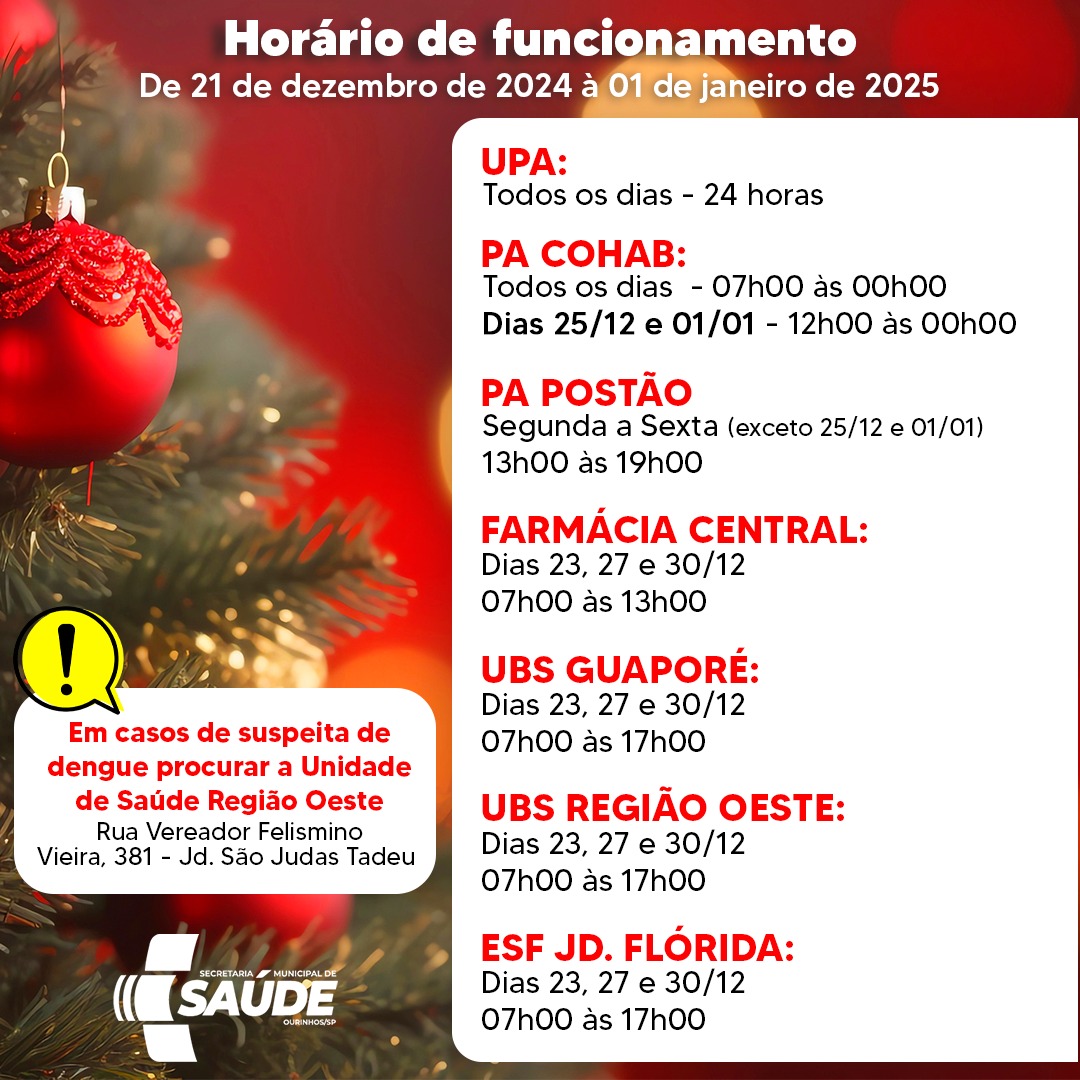 A Prefeitura de Ourinhos (SP) decretou ponto facultativo nas divisões municipais entre o dia 23 e 31 de dezembro. Segundo a prefeitura, a decisão levou em consideração as celebrações do fim de ano e o fim do mandato.