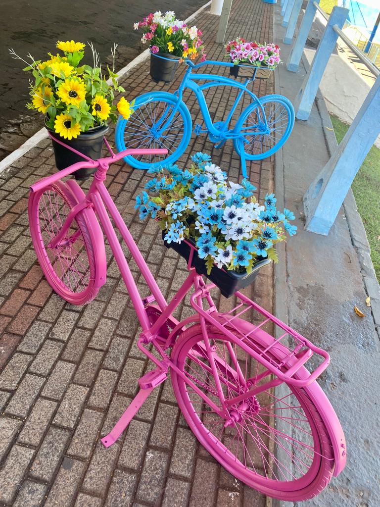 Quem anda pelos locais mais movimentados da cidade poderá reparar em várias bicicletas com floreiras que enfeitarão espaços públicos do município.
