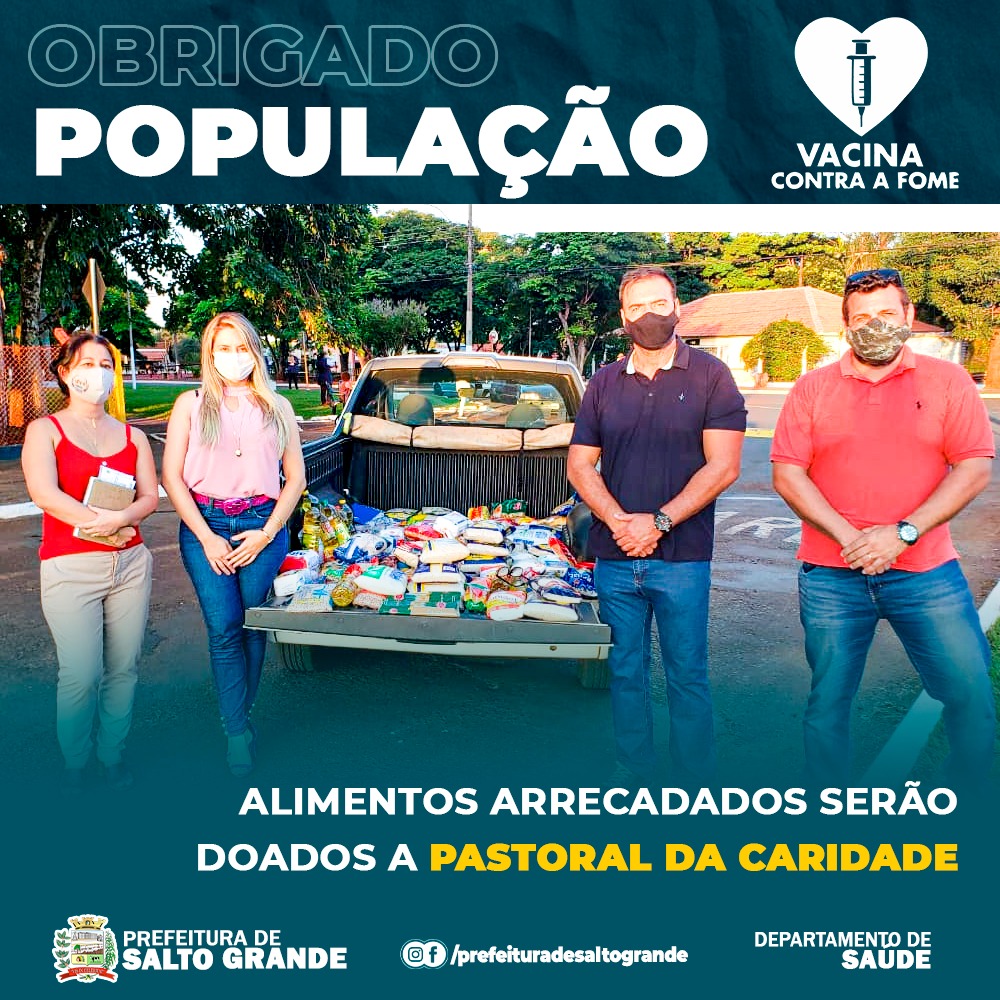 A Prefeitura de Salto Grande, através do Departamento de Assistência Social, deu início na tarde desta terça-feira (06), a campanha “Vacina Contra Fome” que arrecadou para o município alimentos que serão distribuídos às famílias atendidas pela Pastoral da Caridade.