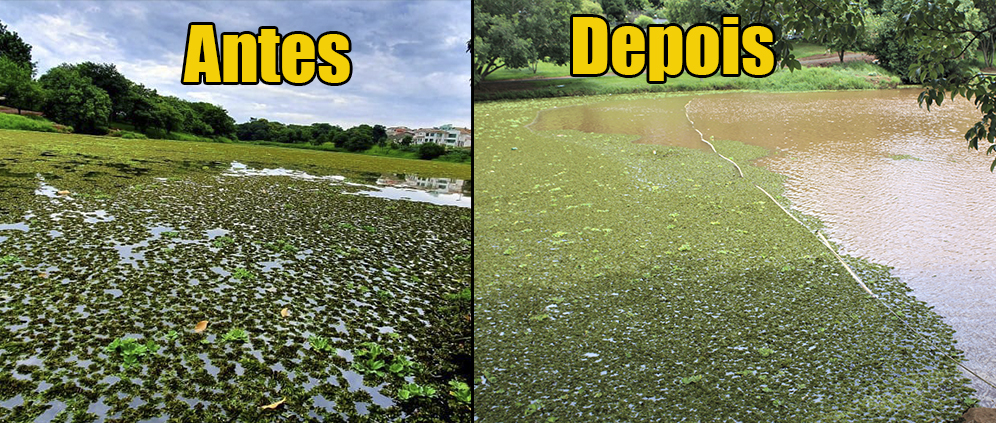 Depois de várias reclamações de moradores da região, a Prefeitura de Ourinhos, finalmente, tomou providências e iniciou, nesta segunda-feira, 13, a limpeza do Lago Maria Aparecida Pedrotti, mais conhecido como Lago do “Royal Park”, que estava tomado por aguapés, desde o começo do mês de dezembro de 2019, quando a infestação iniciou. O Passando a Régua fez uma matéria sobre a situação do local, no dia 18 de dezembro (clique aqui e relembre).