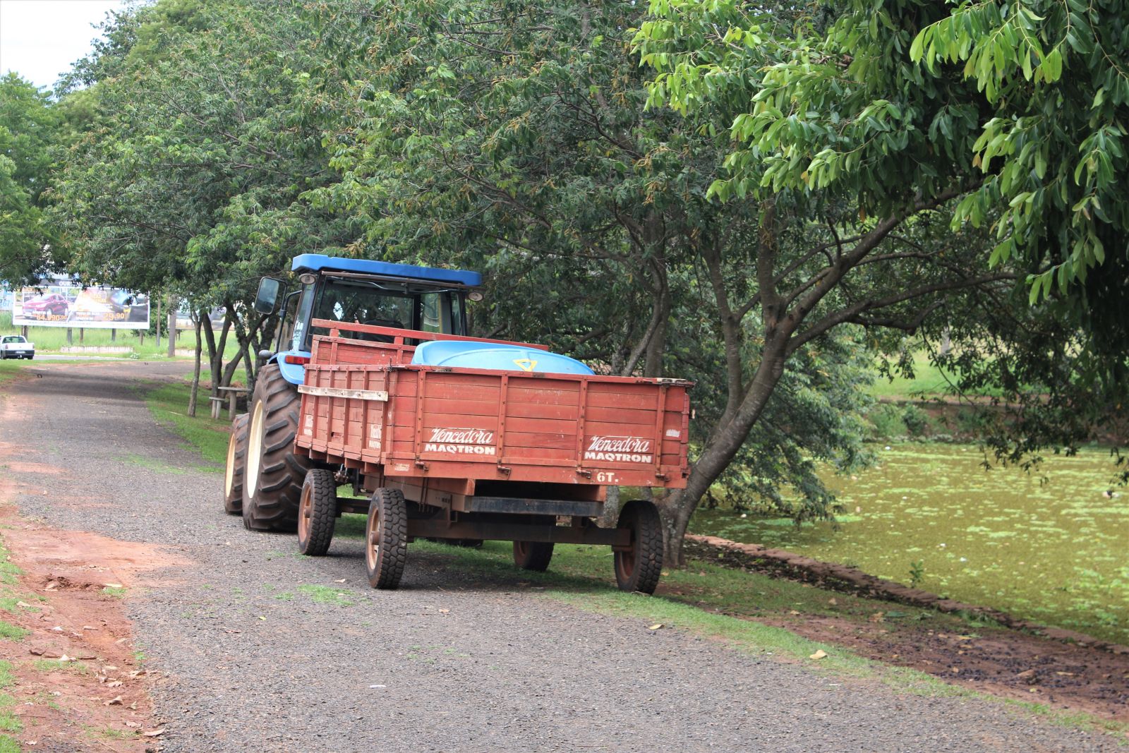 Trator auxilia na limpeza do lago (Foto: Laperuta)