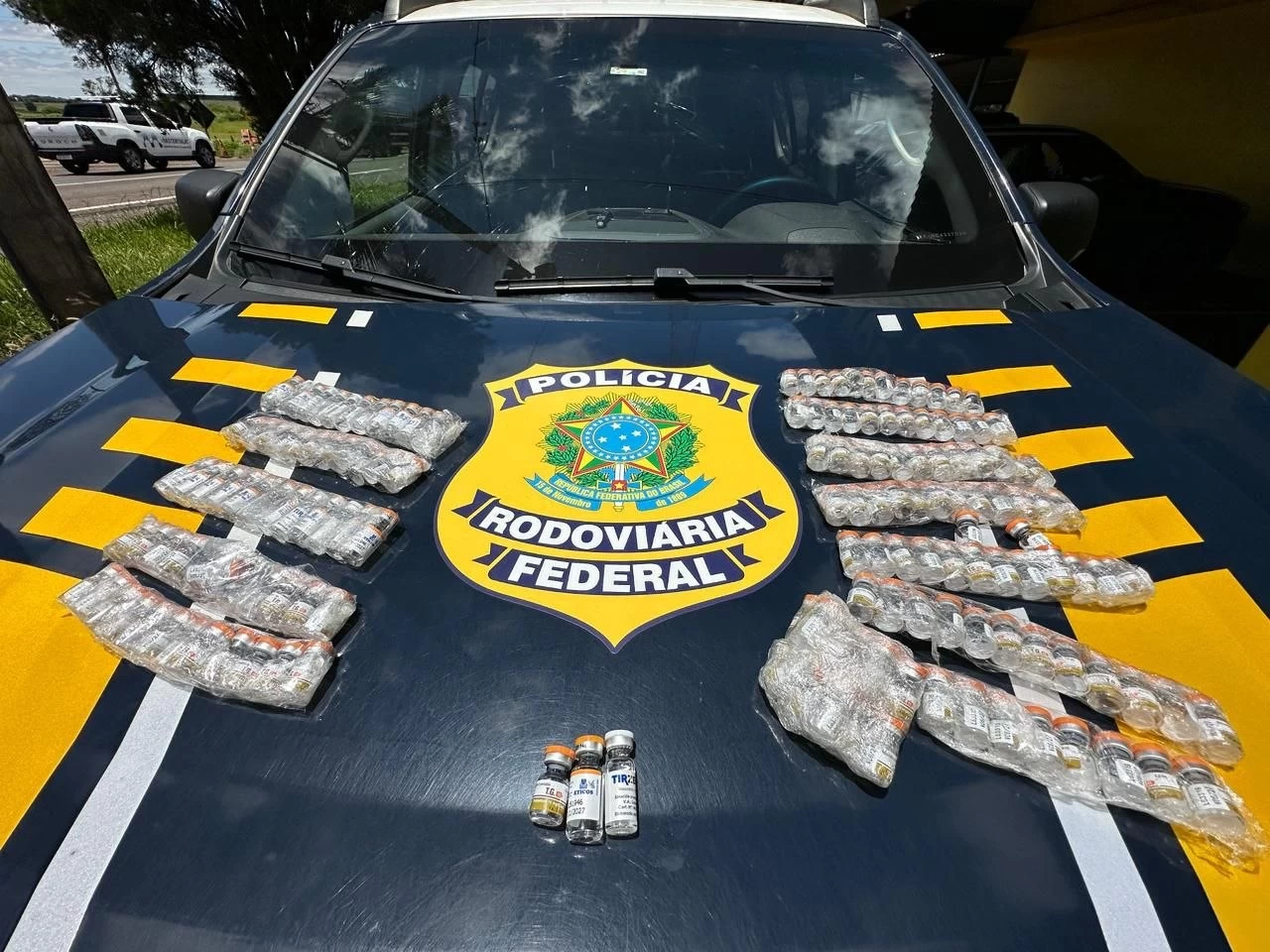 Diante das contradições, os agentes intensificaram a fiscalização e encontraram diversas ampolas de medicamentos de uso controlado ocultadas dentro de garrafas térmicas. Ao todo, foram apreendidas 153 unidades, de diferentes marcas. Questionados, os ocupantes relataram que parte do material seria para uso próprio e outra parte destinada à revenda no Rio de Janeiro.