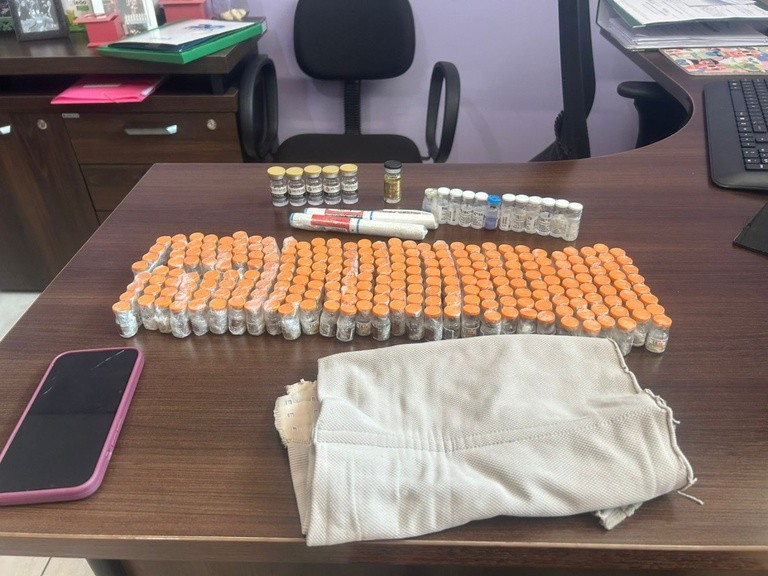Já na Delegacia da Polícia Civil em Jacarezinho, foi constatado que a terceira passageira também escondia medicamentos sob as roupas. Com ela, os agentes apreenderam mais 250 ampolas de tirzepatida, além de um frasco de durateston, dois frascos de peptídeos e cinco frascos de retatrutida.