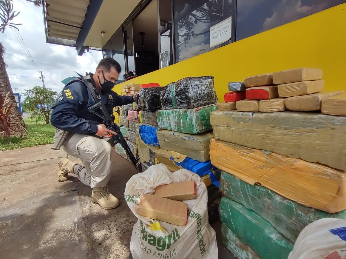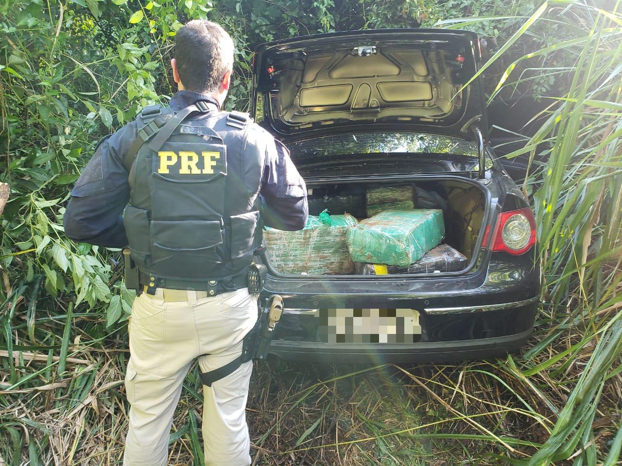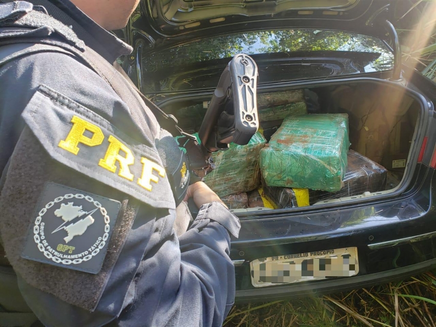 Aproximadamente meia tonelada de maconha foi apreendida, nesta terça-feira, 9, pela Polícia Rodoviária Federal (PRF), na BR 153, em Santo Antônio da Platina, no Paraná (50 km de Ourinhos). A droga estava sendo transportada no banco traseiro e porta-malas do veículo.