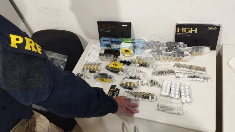 A Polícia Rodoviária Federal (PRF) apreendeu anabolizantes e hormônios e prendeu um homem em flagrante na última sexta-feira (30), durante fiscalização no km 338 da BR-153, no município de Ourinhos (SP).