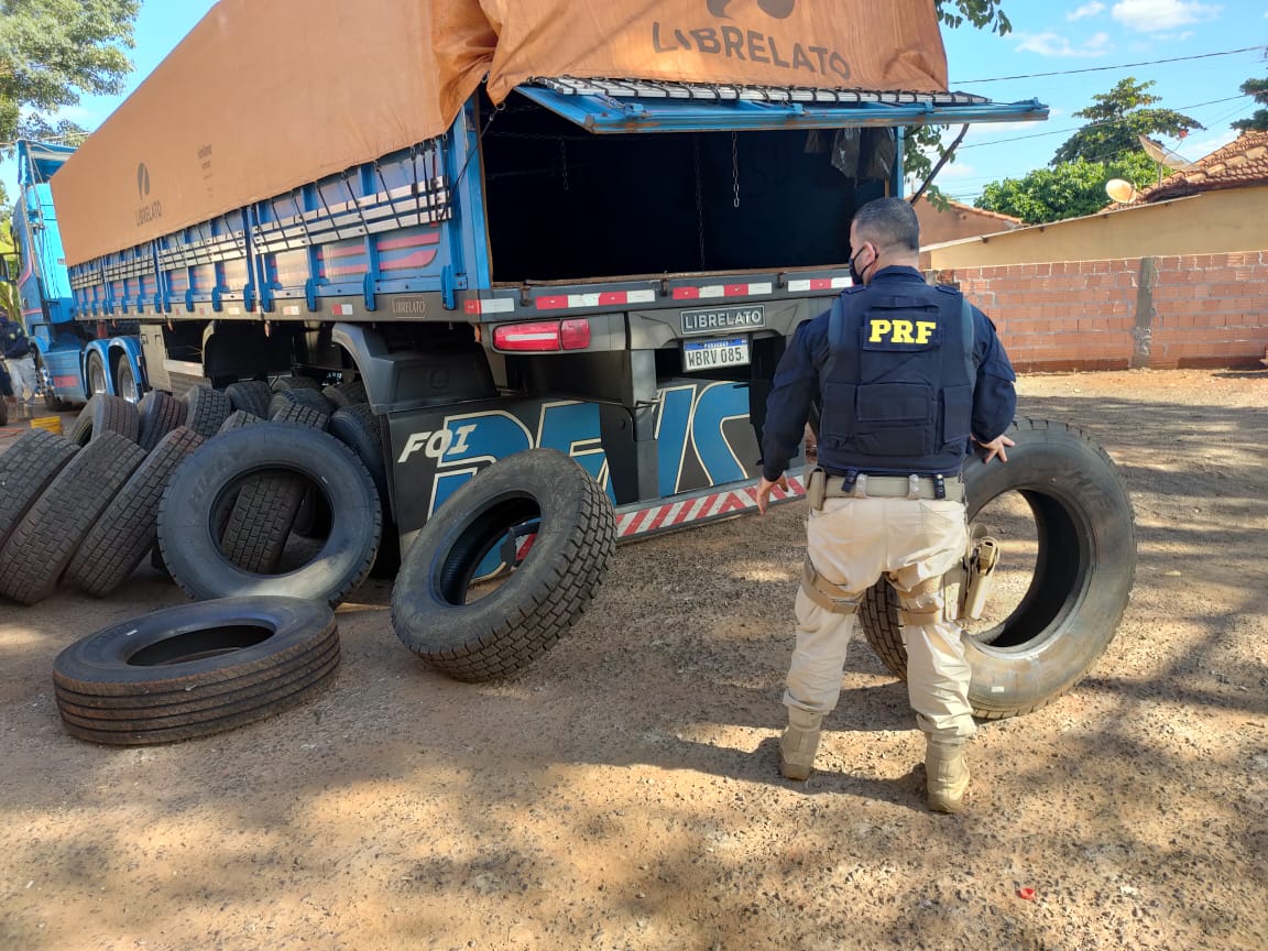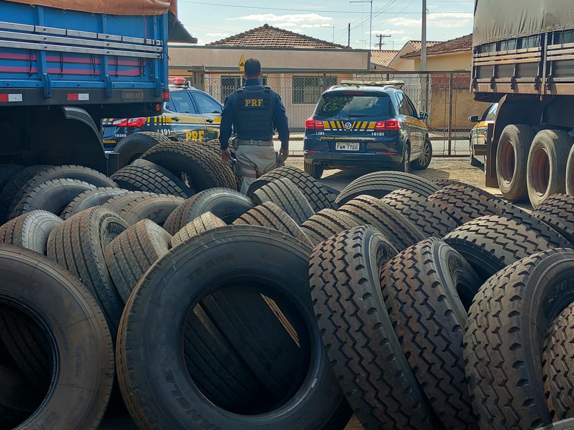 De acordo com a PRF, a apreensão foi um desdobramento da verificação de uma denúncia anônima, em que veículos de carga paraguaios foram autuados e retidos por transitar com pneus velhos e sem condições de uso.