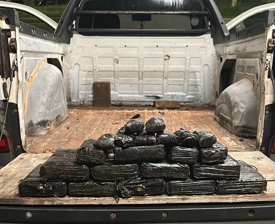 Diante da inconsistência das informações, os agentes realizaram uma busca minuciosa e encontraram um compartimento oculto instalado abaixo da carroceria. Dentro dele estavam 10,690 kg de cloridrato de cocaína e 0,945 kg de haxixe.