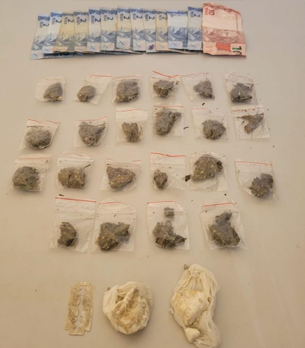 Na manhã desta terça-feira, 7 de novembro de 2023, a Polícia Militar, com a atuação conjunta da Equipe K9 do 13º BAEP e do Pelotão de Força Tática do 31° BPM/I, realizou a prisão de Ícaro M. S. (18 anos) e José A. S. L. (22 anos) e a apreensão de 22 porções de maconha, totalizando 0,044 gramas, além de 2 porções de crack, com um peso total de 0,018 gramas.