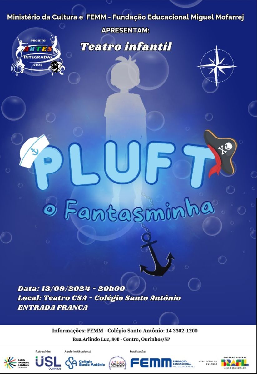 O primeiro espetáculo da temporada será a encenação da peça teatral infantil “Pluft, o Fantasminha” que acontecerá nos dias 13 e 18 de setembro.