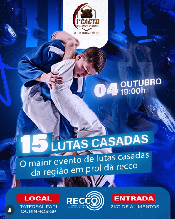 No dia 04 de outubro, às 19h, venha prestigiar o maior evento de lutas casadas da região em prol da Recco – Rede de Combate ao Câncer de Ourinhos.