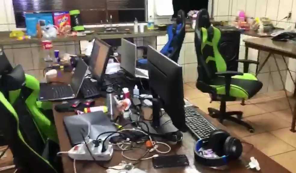 Dentro da propriedade, a polícia encontrou seis pessoas operando computadores, com números de CPF de outros moradores, que não estavam no local. A polícia apurou que o grupo estava praticando estelionatos digitais e é especialista em golpes para obtenção indevida do auxílio emergencial.