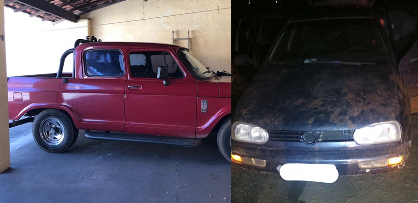 Os policiais militares realizaram a abordagem de um veículo IMP/VW Golf GLX em atitude suspeita e localizaram produtos de roubo e fizeram a apreensão do veículo. Após aaveriguação dos fatos os individuos foram liberados, mas serão investigados.