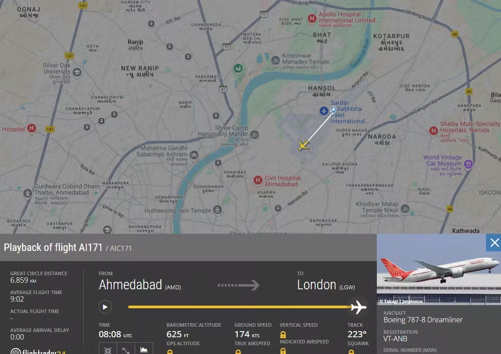 A queda ocorreu segundos após a decolagem, em uma área residencial próxima ao aeroporto. De acordo com a autoridade indiana de aviação, o avião chegou a emitir um sinal de emergência do tipo "Mayday", mas perdeu contato com a torre de controle logo em seguida, quando voava a cerca de 190 metros de altitude, conforme registros da plataforma de monitoramento FlightRadar24.