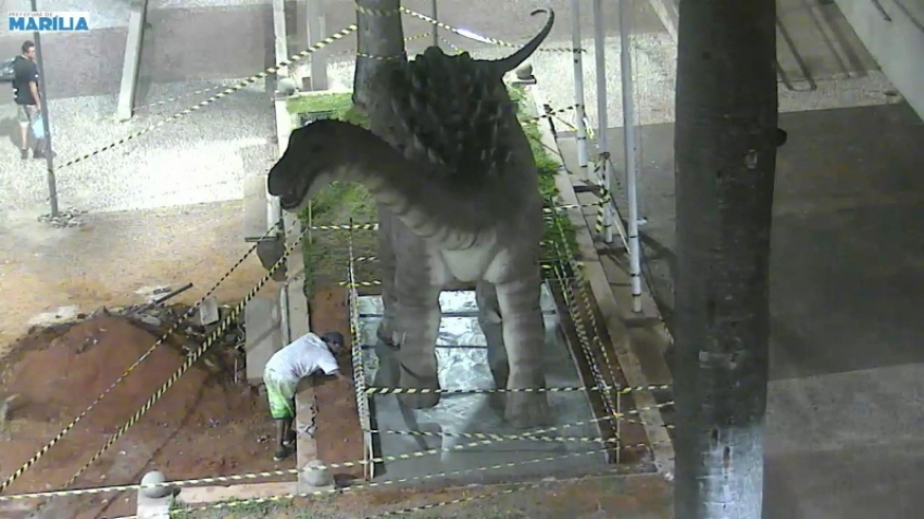 A Prefeitura de Marília divulgou, na tarde desta sexta-feira, 8, imagens de um homem cometendo vandalismo junto à base da réplica de Dino Titã em frente ao Museu de Paleontologia e já registrou atos de vandalismo. O ato ocorreu na madrugada dessa sexta-feira, 8.