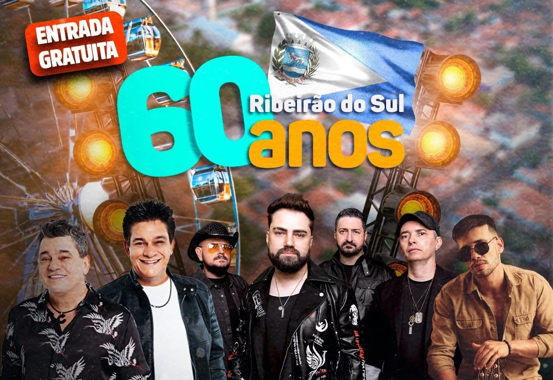 O município de Ribeirão do Sul está em festa! Para comemorar seus 60 anos de história, a cidade preparou uma programação especial com shows imperdíveis e um parque de diversões gratuito para toda a população. O evento acontece nos dias 21, 22 e 23 de março, no Recinto de Eventos, ao lado do Ginásio Municipal, com entrada totalmente gratuita.