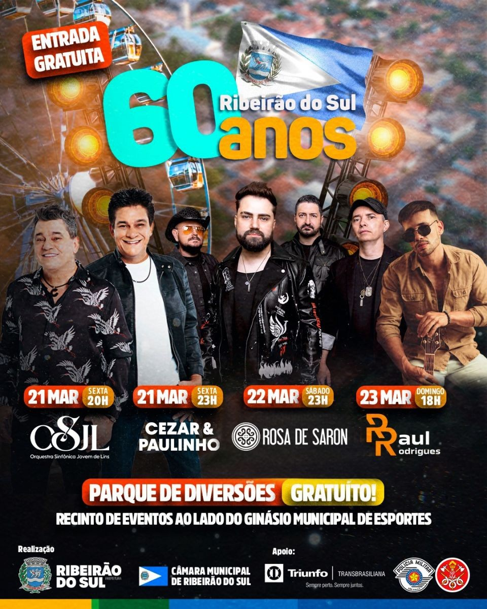 Ribeirão do Sul está celebrando os seus 60 anos de história com uma grande festa neste final de semana, reunindo moradores e visitantes em três noites marcadas pela emoção e pela união. O evento traz apresentações culturais e musicais que encantam o público, reforçando o orgulho e a identidade do município.