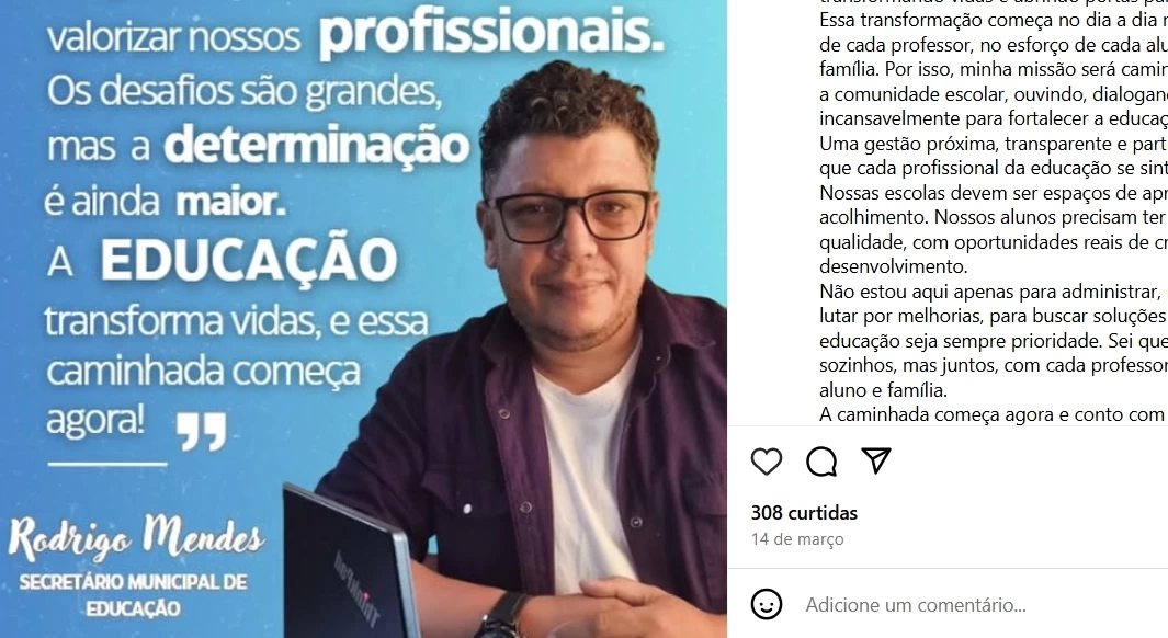 De acordo com informações, a decisão foi motivada por razões pessoais e profissionais. Rodrigo Mendes havia assumido a pasta em março deste ano, após a saída de Carminha, e agora retorna às suas atividades na rede estadual de ensino.