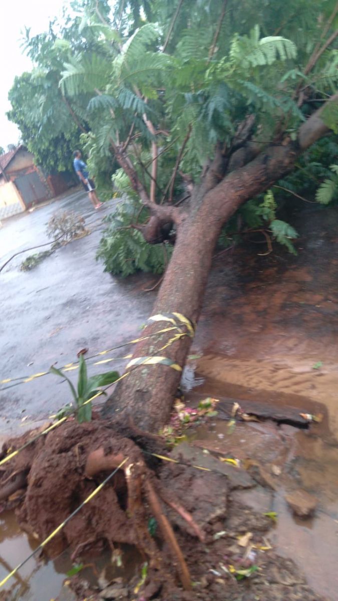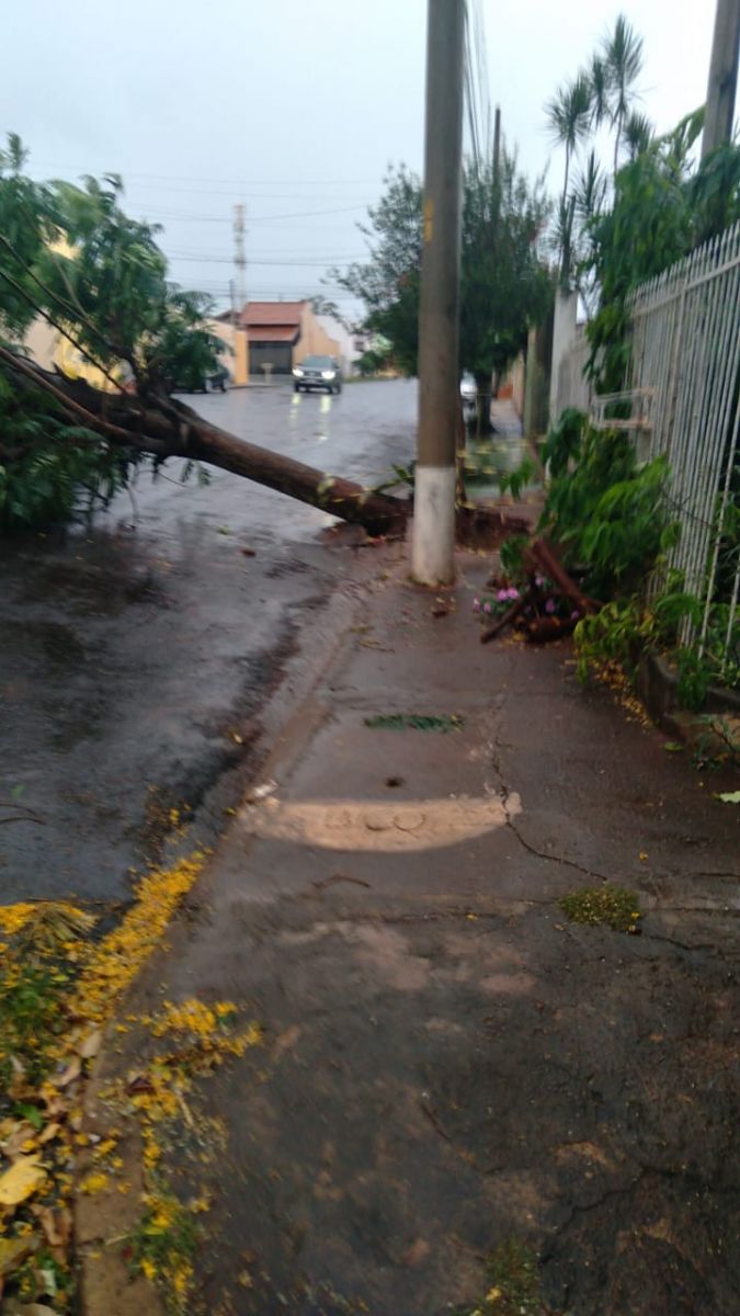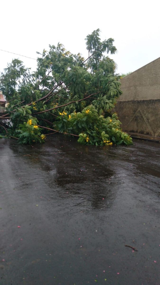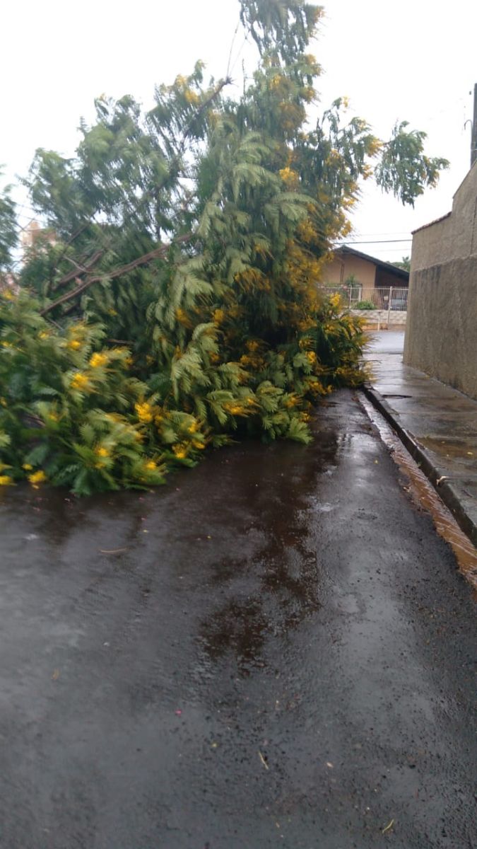 A queda da árvore, que aconteceu durante a chuva, bloqueou a entrada da rua. Até o fechamento desta matéria, a árvore não havia sido retirada da rua.