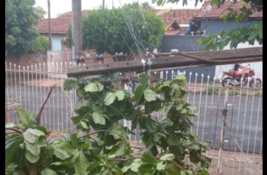 A chuva desta última madrugada (27/01) em Ourinhos deixou alguns estragos. Na Rua Telésforo Tupiná, no Jardim Itamaraty, uma árvore caiu e derrubou um poste de ligação de energia de uma casa.