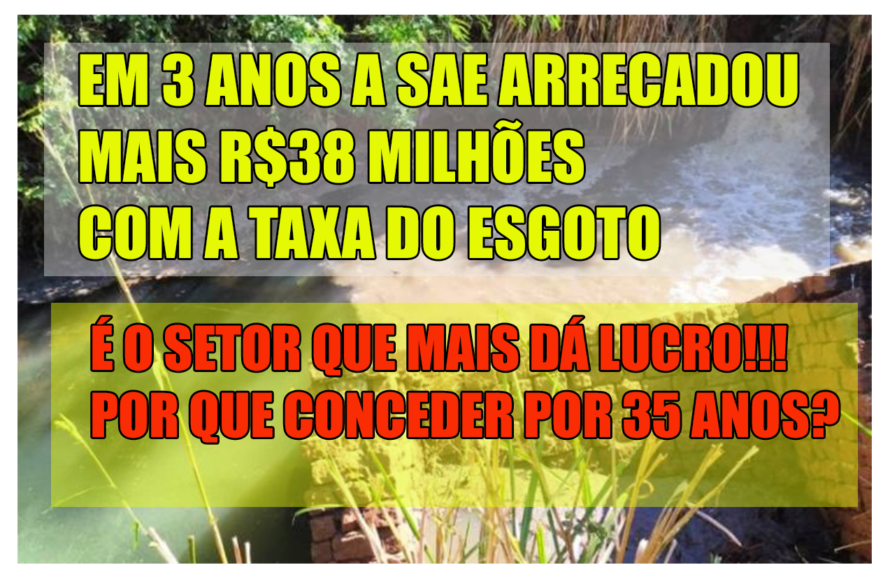 Mas o que chama atenção é o fato de a SAE (Superintendência de Água e Esgoto de Ourinhos) arrecadar mais de R$10 milhões por ano com a famigerada "taxa do esgoto" e mesmo assim nenhum centavo foi usado para tratar o esgoto de Ourinhos, que a atual administração quer conceder por 35 anos à uma empresa privada.