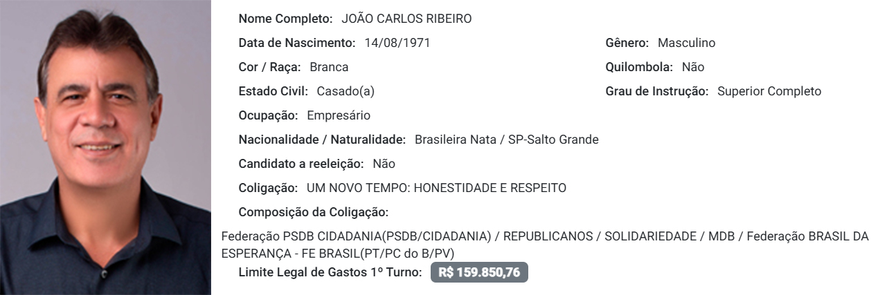 | CARLINHOS RIBEIRO | PSDB | 45 | Concorrendo |