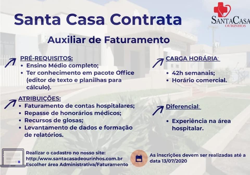 A Santa Casa de Misericórdia de Ourinhos divulgou na tarde desta quinta-feira, 9, novas vagas de emprego. (Confira abaixo as vagas)