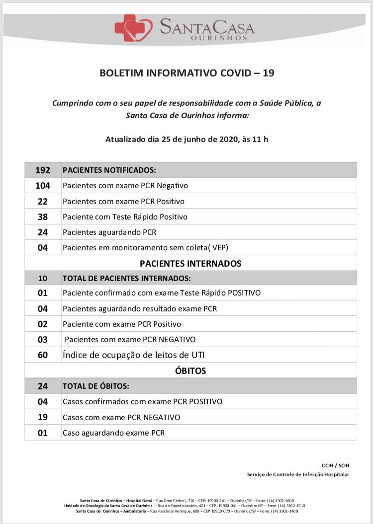 Confira também o último Boletim divulgado pela Prefeitura de Ourinhos:
