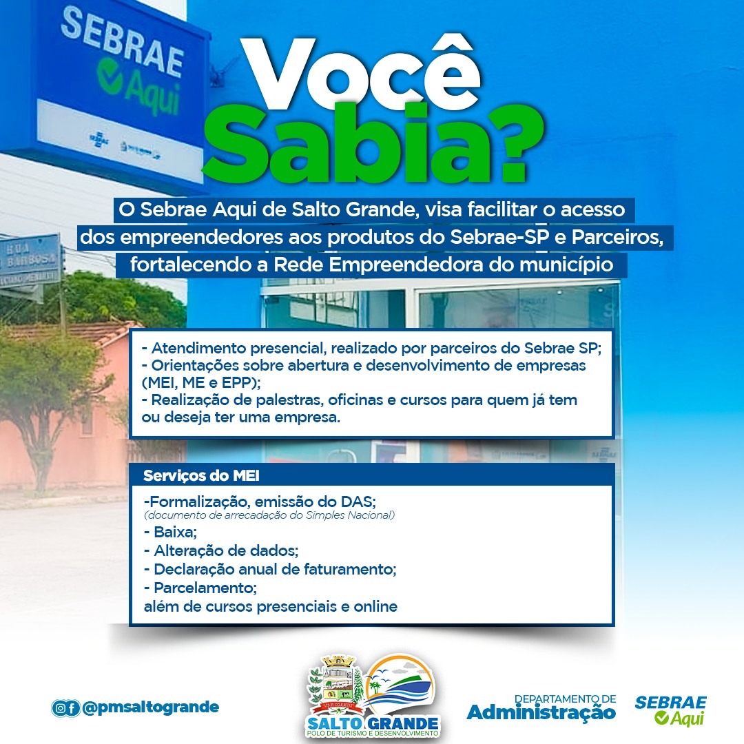 A chegada do Sebrae Aqui certamente é uma boa notícia para os empreendedores de Salto Grande que agora contam com mais uma opção para alavancar seus negócios.