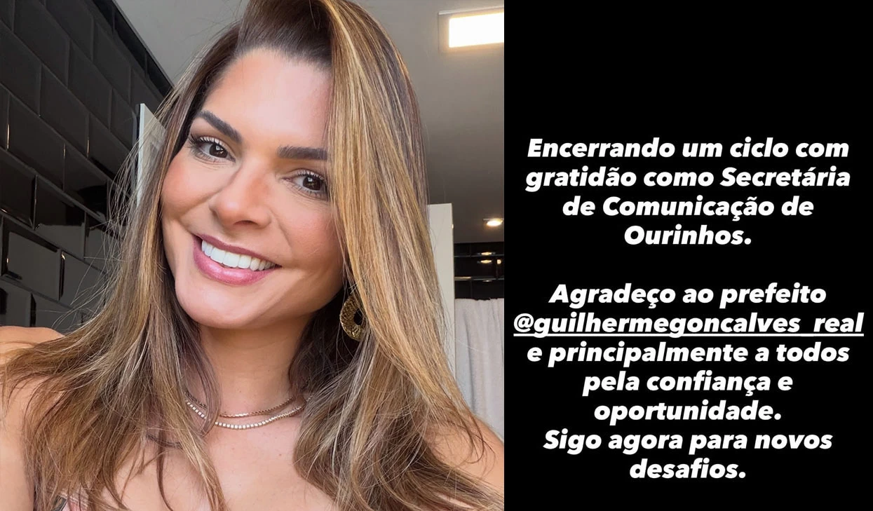 Na publicação, Carolina afirmou estar encerrando o ciclo com gratidão e agradeceu pela confiança e oportunidade, destacando que seguirá para novos desafios. Nos comentários, diversas pessoas deixaram mensagens de apoio e parabenizaram a secretária pela trajetória e pela nova fase profissional.
