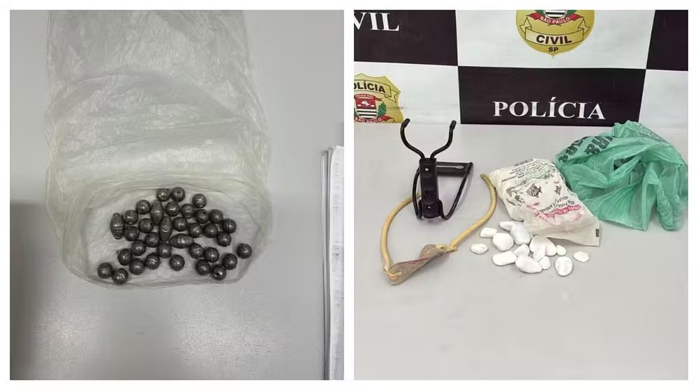 Na casa de Edson, a polícia achou estilingues, pedras e outros materiais que seriam usados em ataques — Foto: Divulgação/Polícia Civil