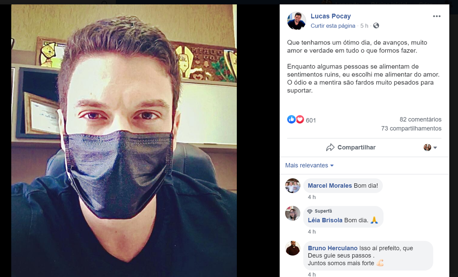 Na manhã de hoje (5) Lucas Pocay fez uma publicação em sua rede social:
