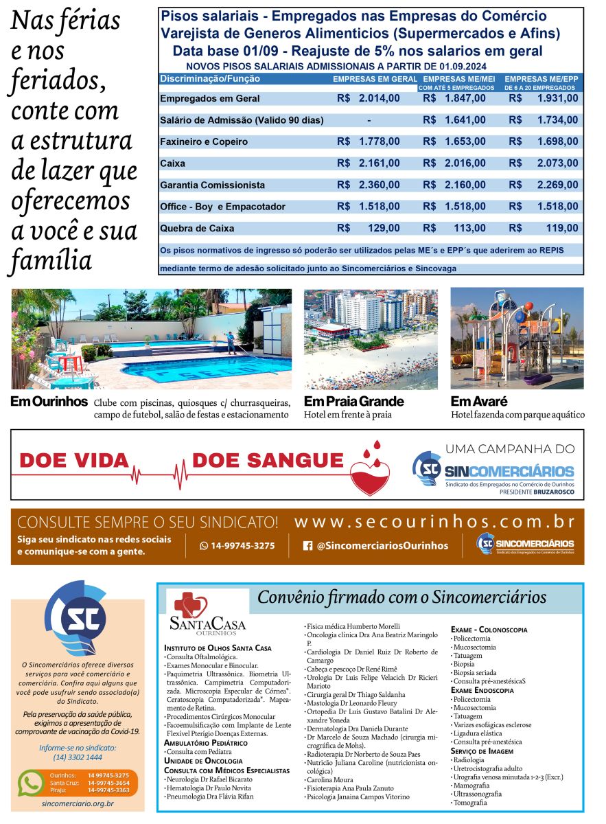 Após negociações iniciadas no segundo bimestre de 2024, o Sincomerciários de Ourinhos oficializou, no dia 21 de janeiro, a nova Convenção Coletiva de Trabalho junto ao Sincovaga. O acordo prevê um reajuste salarial de 5%, acima da inflação do período, que foi de 3,71% (INPC), gerando um ganho real de 1,29%.