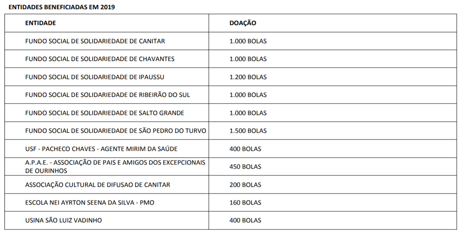 "Brigadeiro iniciou a Campanha Natal sem Fome em 2002, há 17 anos consecutivos encerra o ano com uma atividade solidária, até 2012 a campanha distribuiu alimentos, eram 2.000 cestas por ano. De 2013 a 2016 realizou a atividade “FAÇA UMA CRIANÇA FELIZ, em um dia de muitas festividades e alegria voltada para as crianças que distribuiu brinquedos, doces, sorvetes, refrigerante, pipoca, algodão doce com muita diversão para as crianças e suas famílias. Em todos estes anos manteve uma ajuda pontual atendendo as entidades em suas necessidades mais urgentes e na edição de 2017, 2018 e 2019 por conta das restrições financeiras decidiu priorizar o atendimento às entidades e fundos sociais de solidariedade de Ourinhos e de nossa extensão de base: Salto Grande, São Pedro do Turvo, Salto Grande, Canitar, Chavantes e Ipaussu, dessa forma a ajuda chega efetivamente aos carentes assistidos pelas entidades beneficentes que realizam um trabalho de importância fundamental no socorro de pessoas que passam por dificuldades extremas evitando assim a degradação social e mantendo um equilíbrio em nossa comunidade. Somos todos responsáveis". assessoria Sindicato Rural.