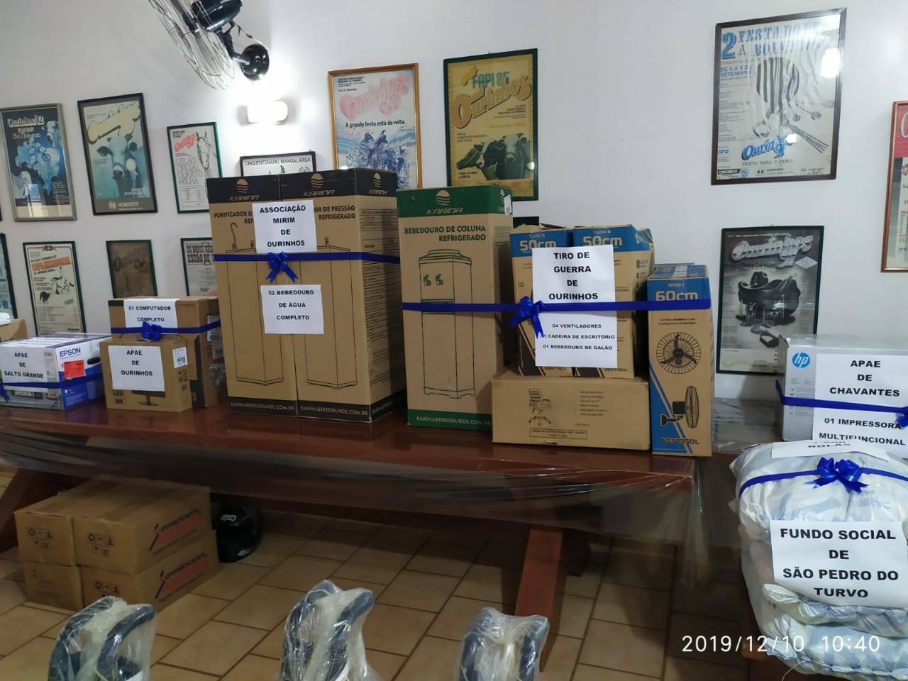O Sindicato Rural de Ourinhos, através de seu presidente Eduardo Luiz Bicudo Ferraro “Brigadeiro”, realizou na manhã da última terça-feira, 10, a cerimônia de entrega das doações da campanha “Natal Solidário 2019”, que atenderá pelo menos 39 entidades de Ourinhos e região, com doações que vão de brinquedos, cestas básicas, equipamentos e até dinheiro. (Confira o vídeo abaixo).