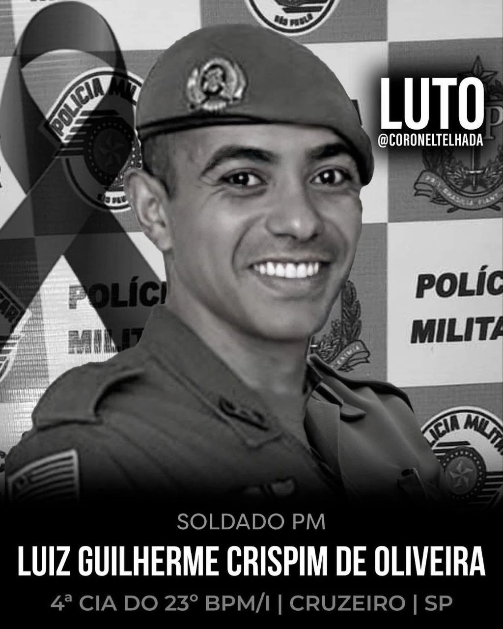 É com profundo pesar, que a Polícia Militar do Estado de São Paulo, comunica o falecimento do Soldado PM Crispim, integrante da 4ª Companhia do 23º Batalhão de Polícia Militar do Interior (Lorena), vítima de um covarde assassinato ocorrido durante uma peregrinação rumo ao Santuário Nacional de Aparecida.