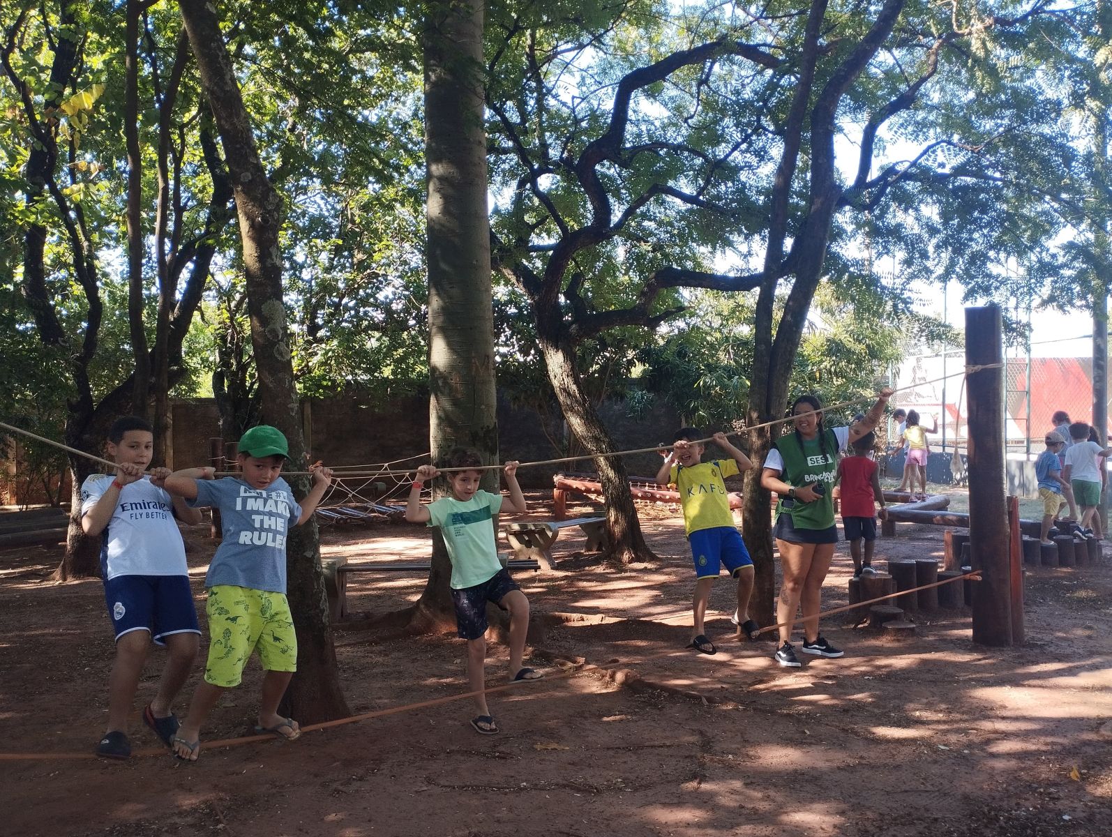 As crianças têm acesso a uma estrutura completa com piscinas, quadras, campos, playgrounds e áreas livres. O ambiente é seguro, acolhedor e conta com monitores especializados que garantem uma experiência enriquecedora.