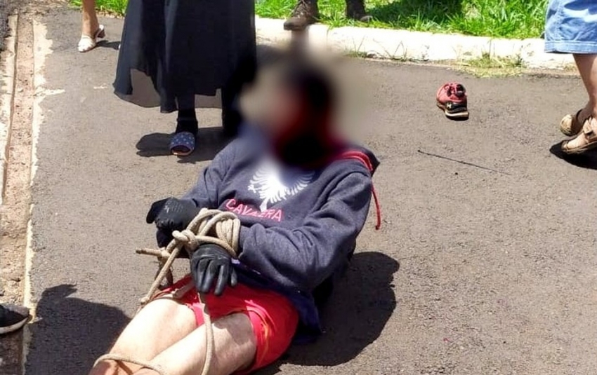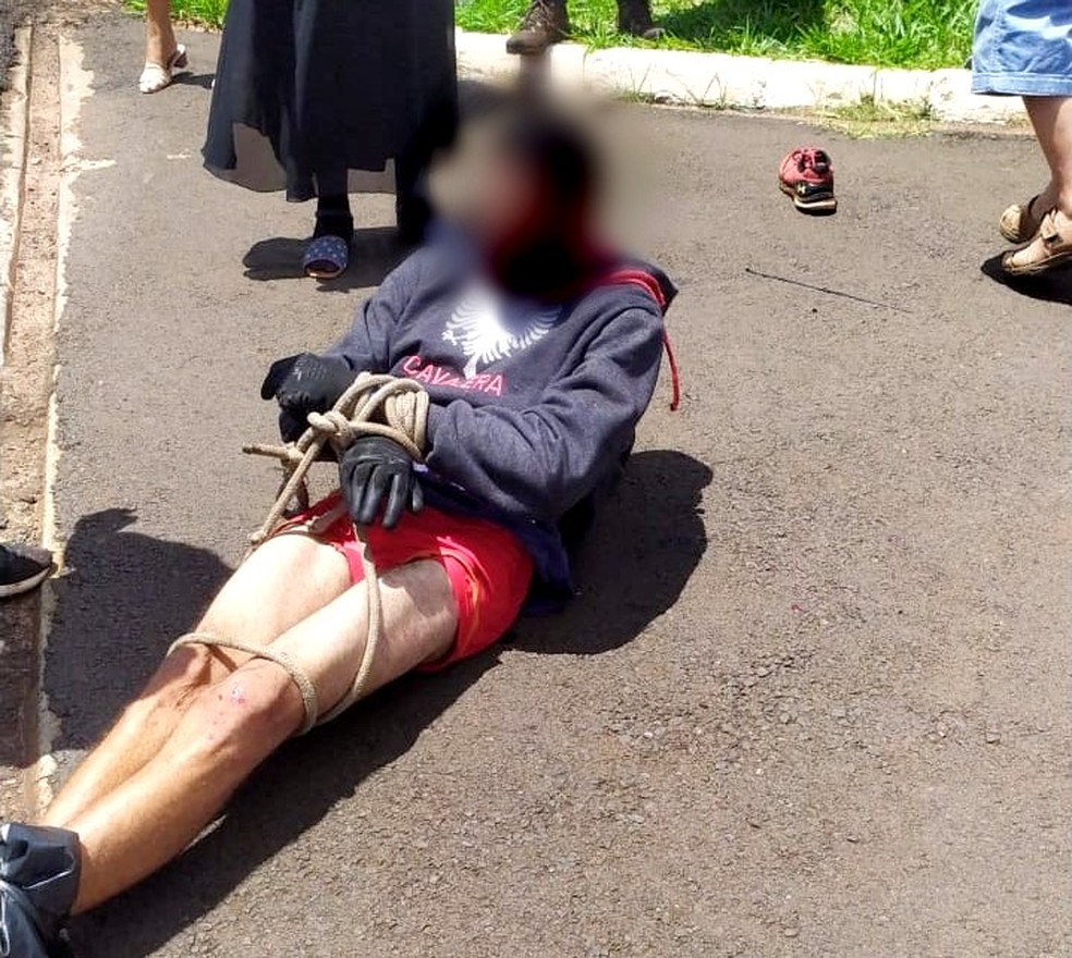 Um homem suspeito de balear o dono de uma quitanda foi "detido" por populares e amarrado com cordas no meio da rua, na tarde desta quinta-feira (3), em Jaú (SP) (160 km de Ourinhos). O crime aconteceu em um estabelecimento localizado na Avenida João Ferraz Netto, no bairro Jardim Ferreira Dias.