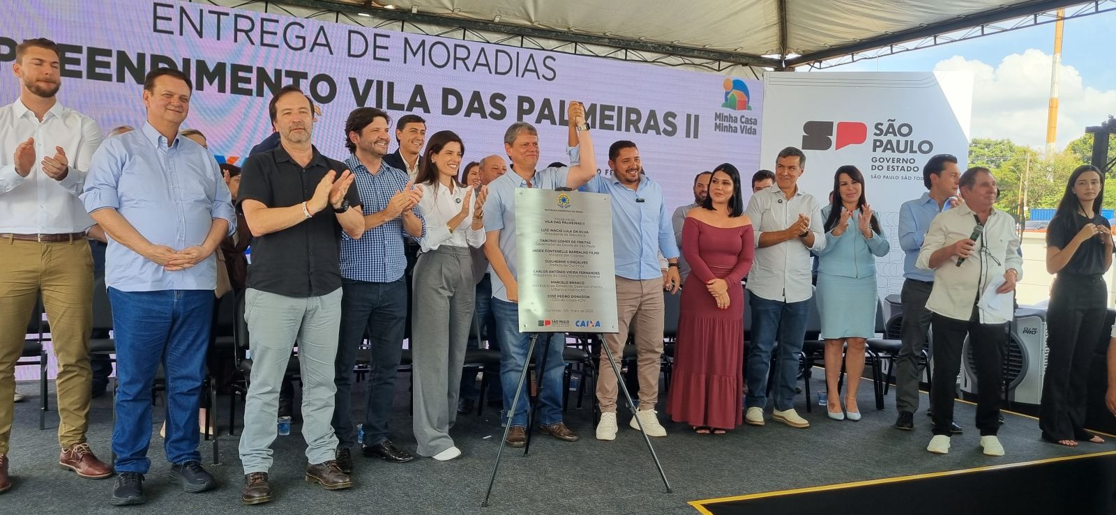 A agenda de entregas seguiu por outros municípios da região, como Campos Novos Paulista, Palmital e Ibirarema, totalizando 473 unidades habitacionais entregues no dia.