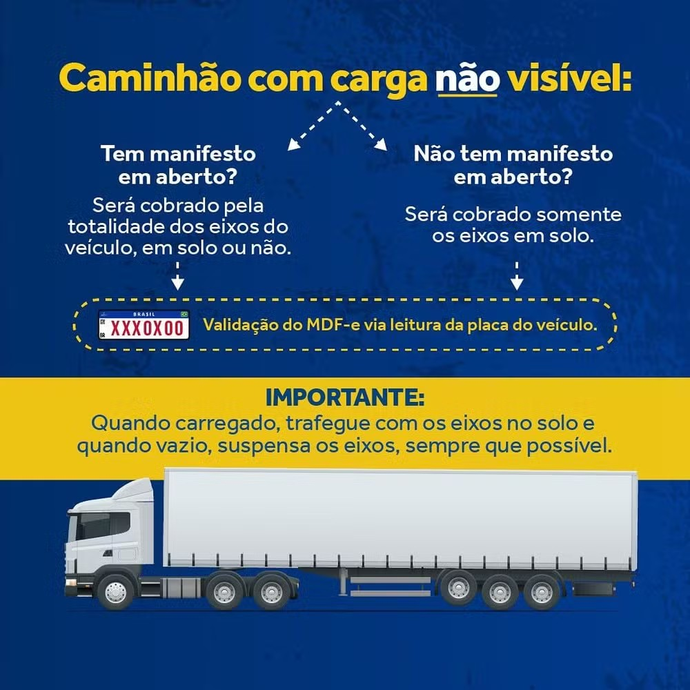 Quando o veículo estiver vazio, é necessário suspender os eixos. Além disso, é essencial que o veículo comercial esteja com o MDF-e correto para agilizar as passagens nas praças de pedágio.