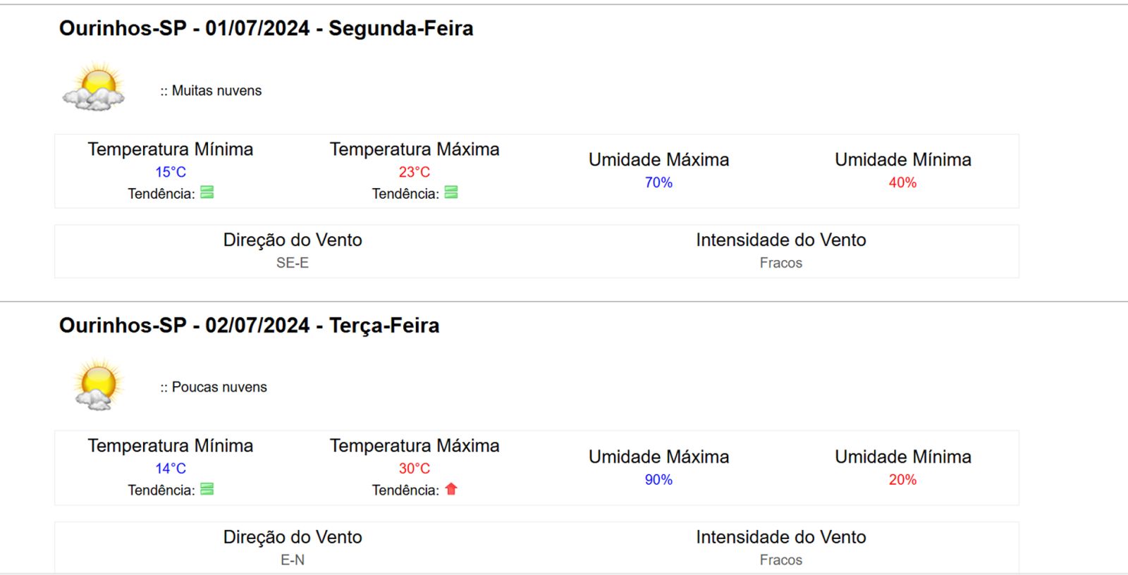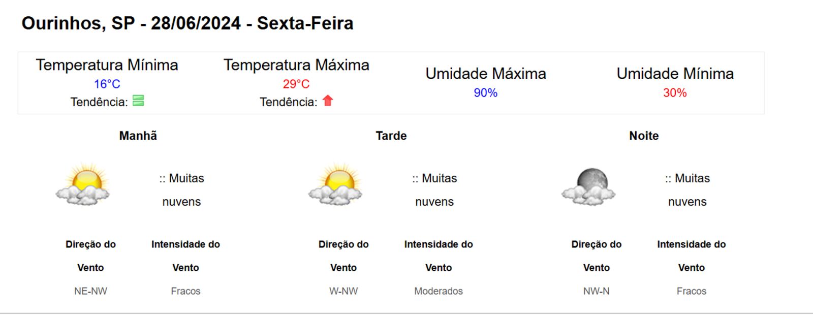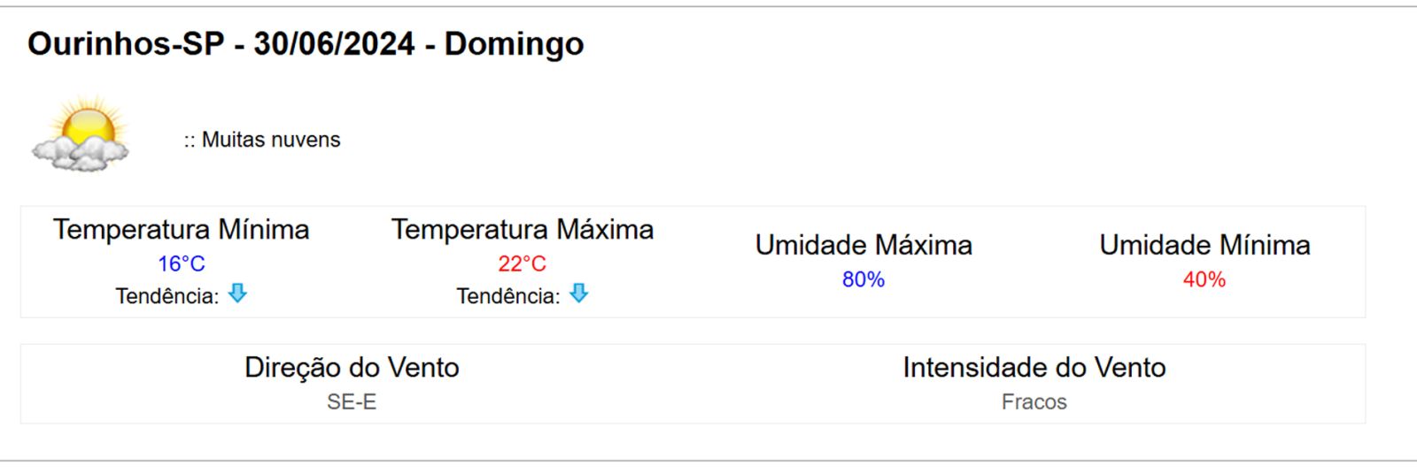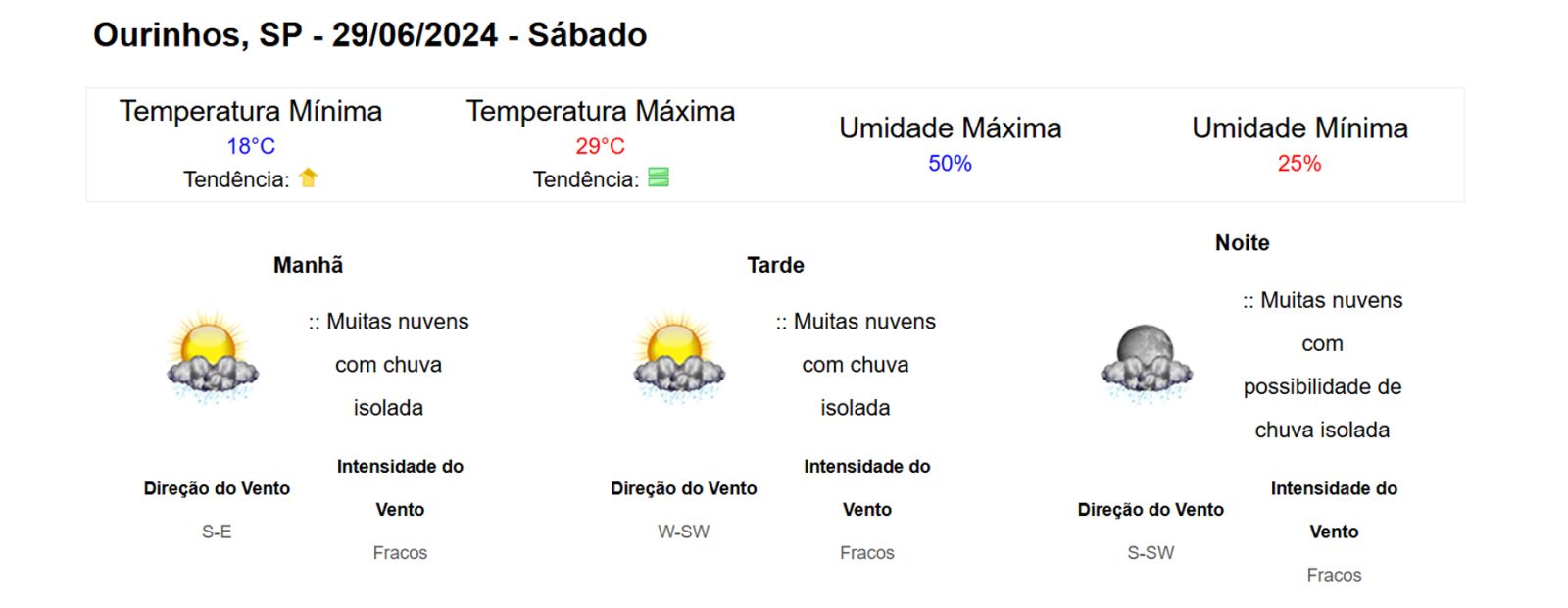 Em Ourinhos, no interior de São Paulo, as temperaturas já começaram a cair desde ontem, com mínima registrada em 16°C. A previsão indica que a mínima pode chegar a 15°C, com possibilidade de chuvas isoladas na noite desta sexta-feira (28) e durante o sábado (29).