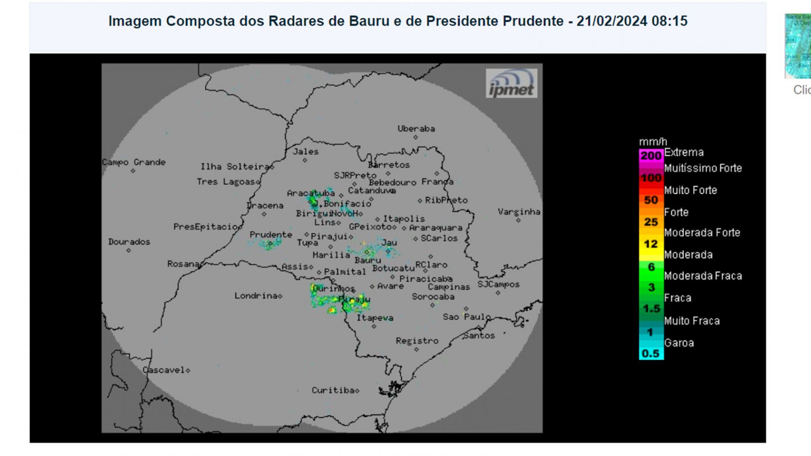 Mais chuvas na região nesta quarta-feira, 21 (Foto: IPMET)
