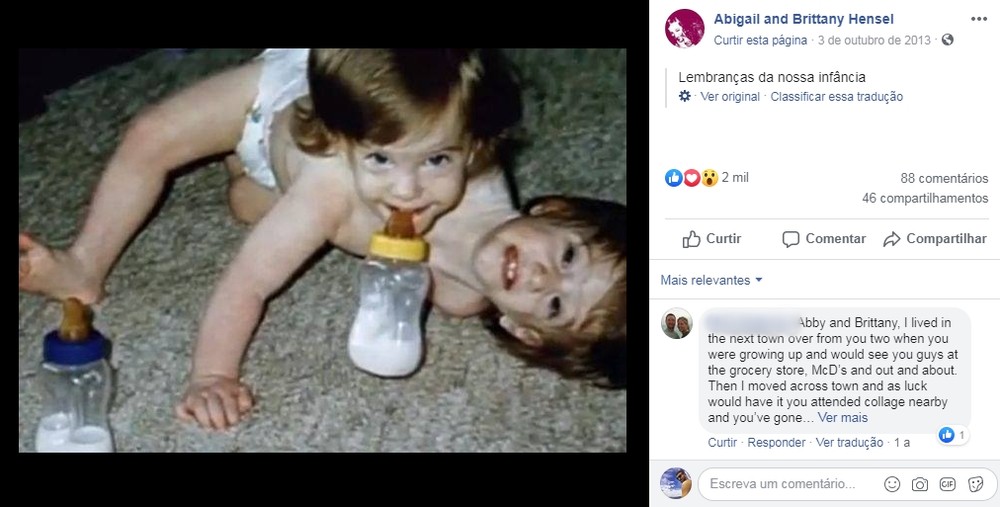Irmãs Abby e Brittany Hensel quando crianças — Foto: Reprodução/Facebook