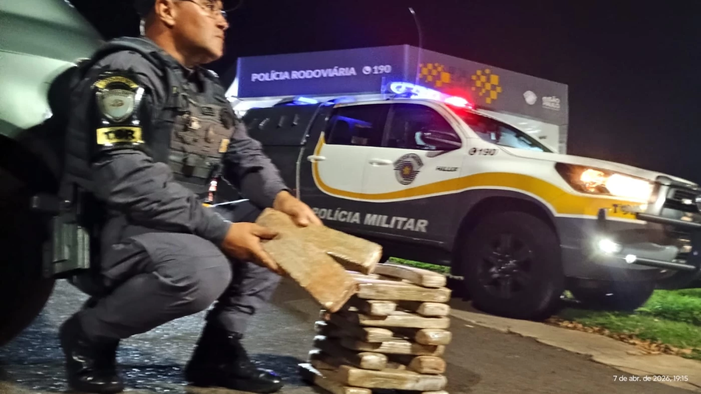 De acordo com a Polícia Militar Rodoviária, a abordagem ocorreu por volta das 19h10, no km 413,4, na praça de pedágio. Durante a vistoria em um VW/Gol, os policiais localizaram um saco plástico no assoalho do banco traseiro contendo 19 tabletes de maconha, que totalizaram 14,860 quilos da droga.
