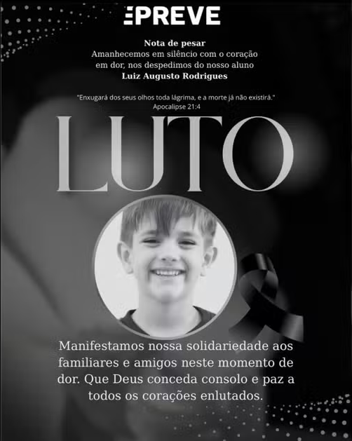 Nas redes sociais, a escola onde Luiz estudava publicou uma nota de pesar lamentando profundamente a perda.