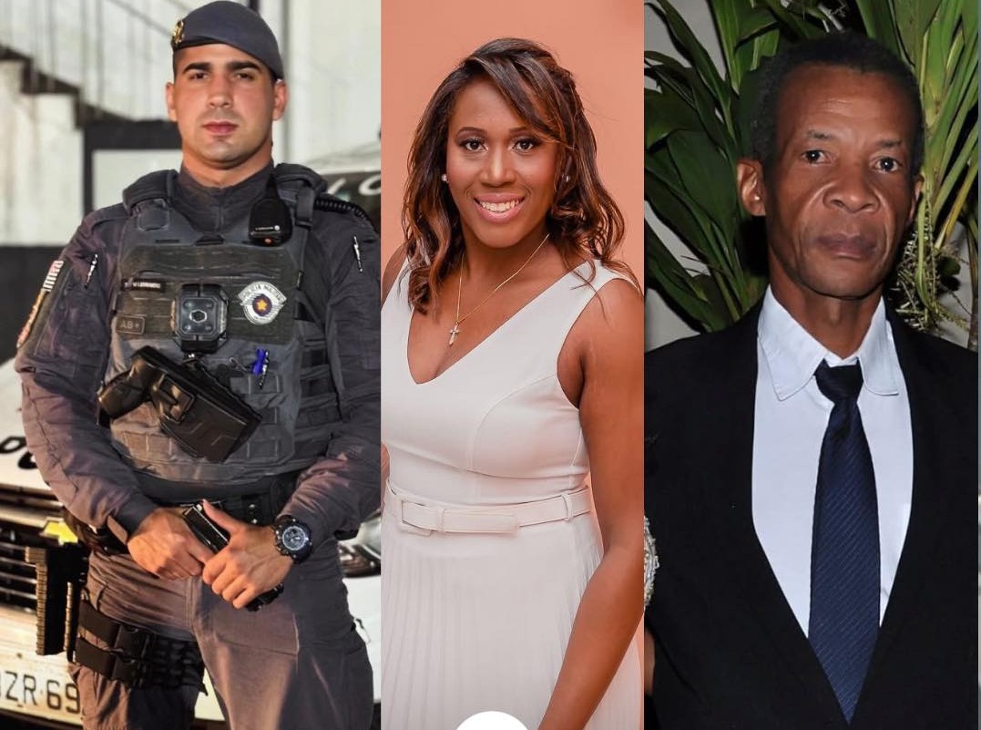 Policial Militar Leonardo, esposa Camila Santos Silva e o pai dela, Paulo - Foto: Reprodução.
