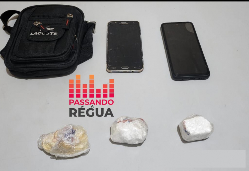 Nada de ilícito foi encontrado com os ocupantes durante a abordagem inicial. No entanto, em uma busca veicular, foram encontrados dois aparelhos celulares marca Motorola e Samsung no banco dianteiro do passageiro, além de uma bolsa tipo tiracolo preta contendo uma substância que se assemelhava à cocaína, localizada sob o banco do passageiro lado direito do veículo.