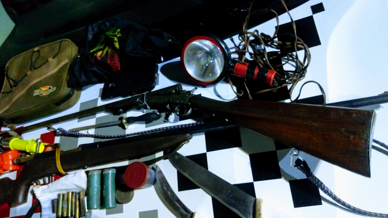 Os veículos, as armas e os objetos de caça foram apreendidos. Confira as informações divulgadas pela Polícia Militar: