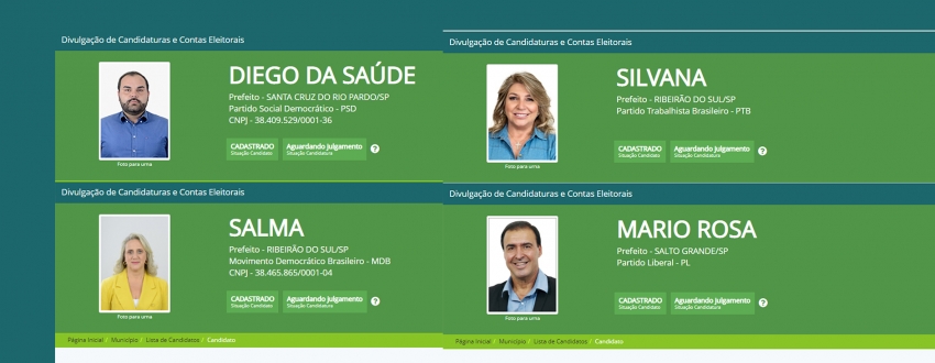 No site já constam quatro pré-candidaturas da região de Ourinhos, que estão sob análise do TSE. São das cidades de Santa Cruz do Rio Pardo, Ribeirão do Sul e Salto Grande. Mas ainda nenhum pré-candidato da cidade de Ourinnhos aparece. Confira abaixo: