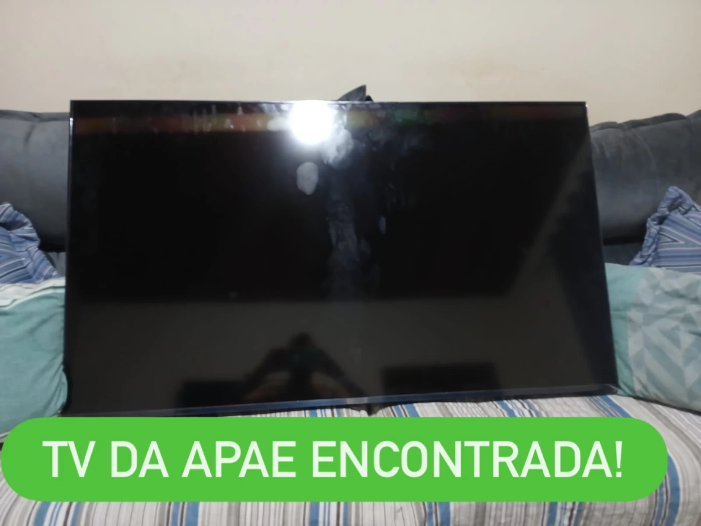 Ainda na tarde do mesmo dia, a própria direção da APAE utilizou as redes sociais para informar que o aparelho havia sido recuperado. Em publicação, a entidade comemorou: “TV encontrada, graças a Deus e a vocês que compartilharam!”.