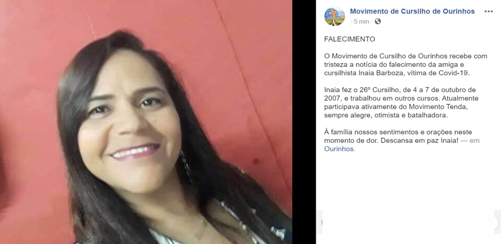 Nas redes sociais, o Movimento de Cursilho de Ourinhos divulgou a morte de Inaiá e destacou que ela foi vítima de Covid-19. Confira abaixo:
